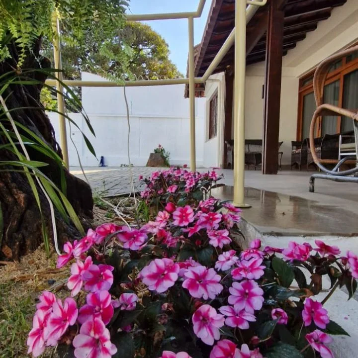 Em nossa área externa, possuímos uma horta que produz verduras de folha, tomates e ervas para preparo de chás.